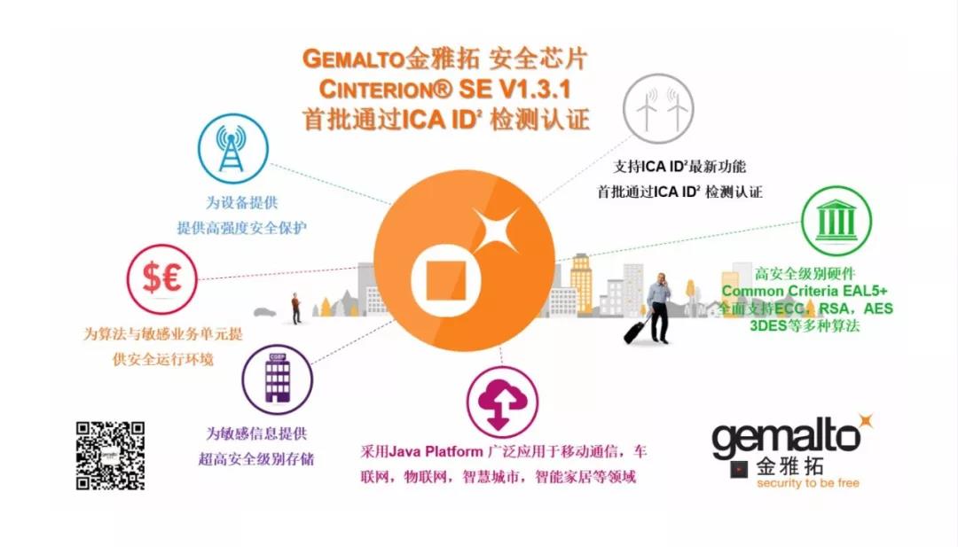金雅拓一直致力于為物聯網安全保駕護航,并作為ICA(IoT 合作伙伴計劃)聯盟1理事成員,出席本次盛會,與科技大佬們共享經驗,共促物聯網的蓬勃發展。本次大會發布了首批通過ICA ID2檢測認證2的安全芯片產品,金雅拓Cinterion® SE 安全芯片成為首批通過檢測認證的高安全級別產品。