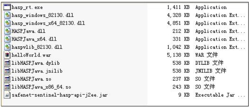 war 包加密后,產(chǎn)生的文件相對(duì)較少,此處只需要將原來(lái)移出的 jar 包和.class 文件重新加入,部署時(shí)將 safenet-sentinel-hasp-api-j2ee.jar 放入$CATALINA_HOME/lib 目錄下。