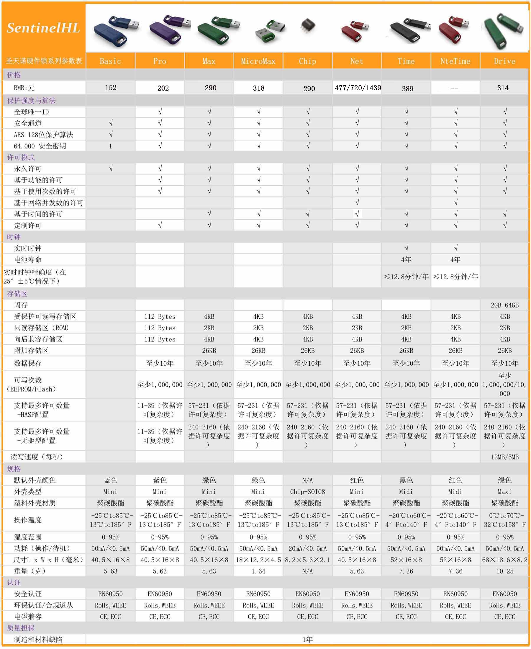 圣天諾Sentinel LDK硬件加密鎖各型號性能對比圖