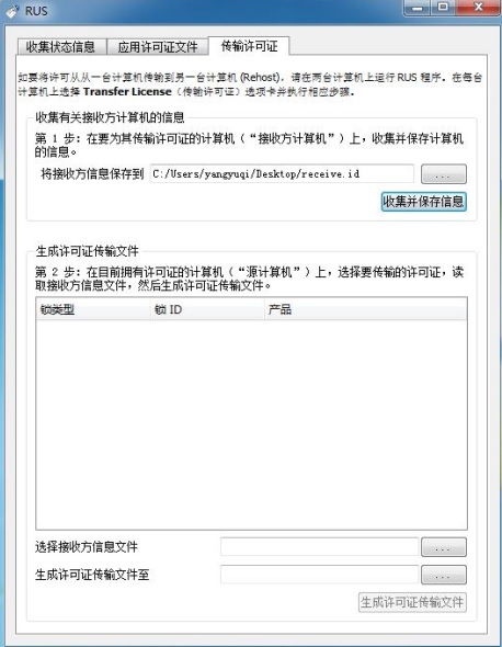 在B電腦上進(jìn)行如圖的操作,打開RUS,選擇接收電腦的相關(guān)信息存儲(chǔ)為receive.id,然后點(diǎn)擊“收集并保存信息”。就會(huì)看到已經(jīng)生成了receive.id這個(gè)文件。然后,把這個(gè)id 文件發(fā)給 A 電腦。